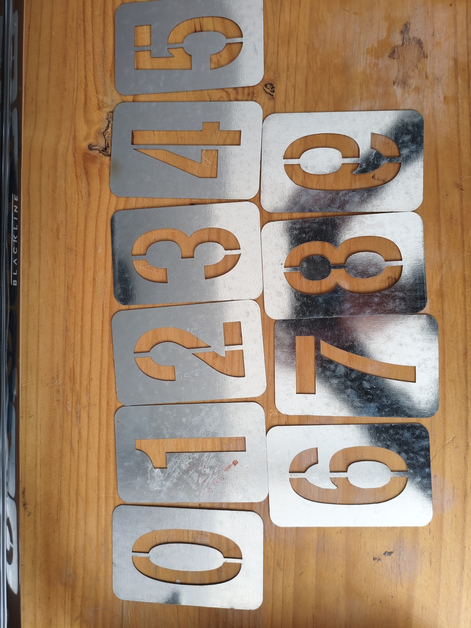 Plantillas de letras y número para pintar BM’s en topografía de hierro.